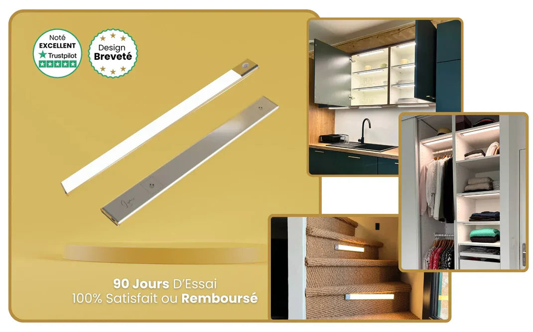 Illumina i tuoi spazi bui in un attimo con le nostre lampade a rilevamento di movimento, senza cablaggi né fori. Installazione in meno di 30 secondi per un'illuminazione intelligente e pratica!